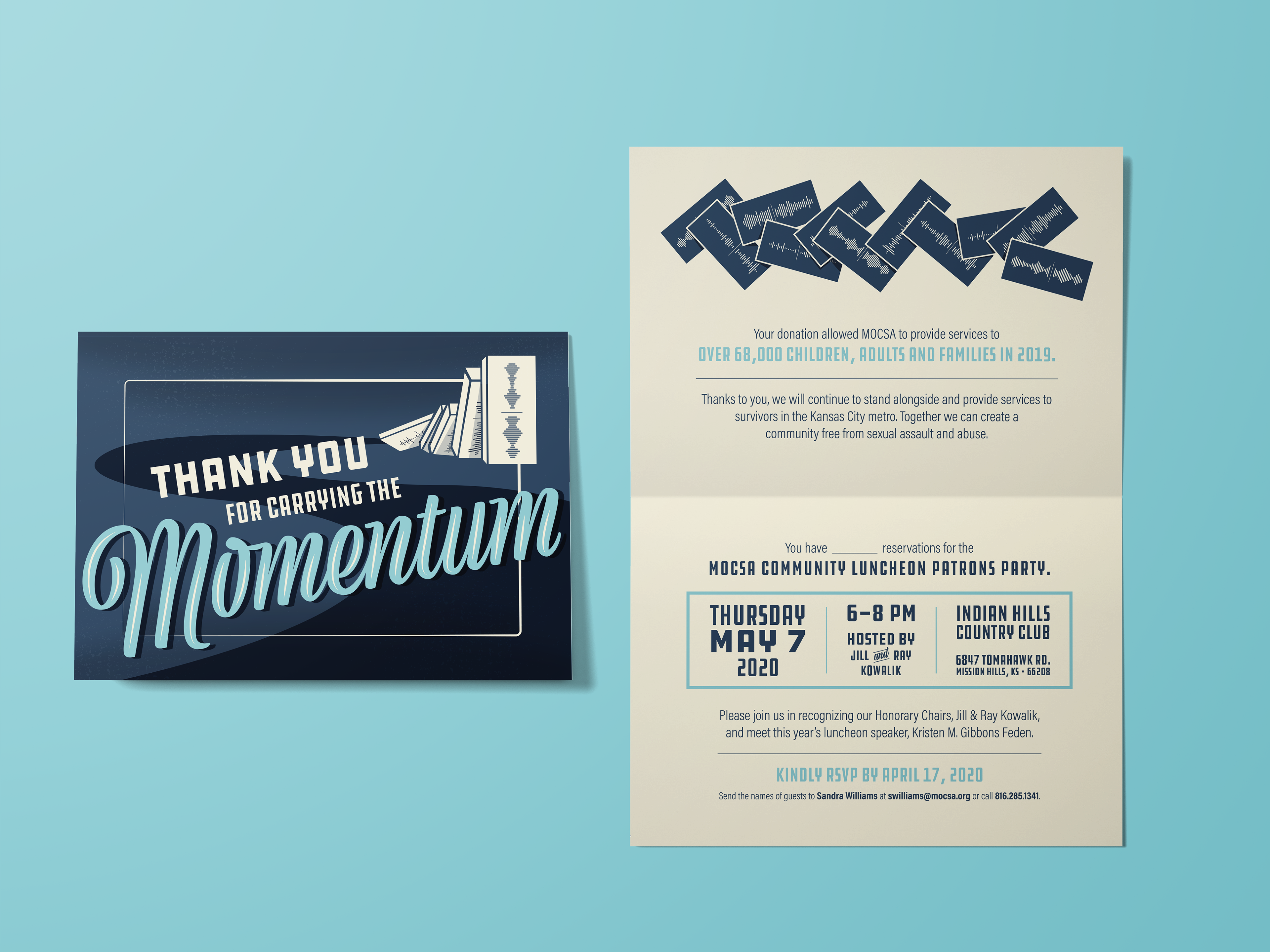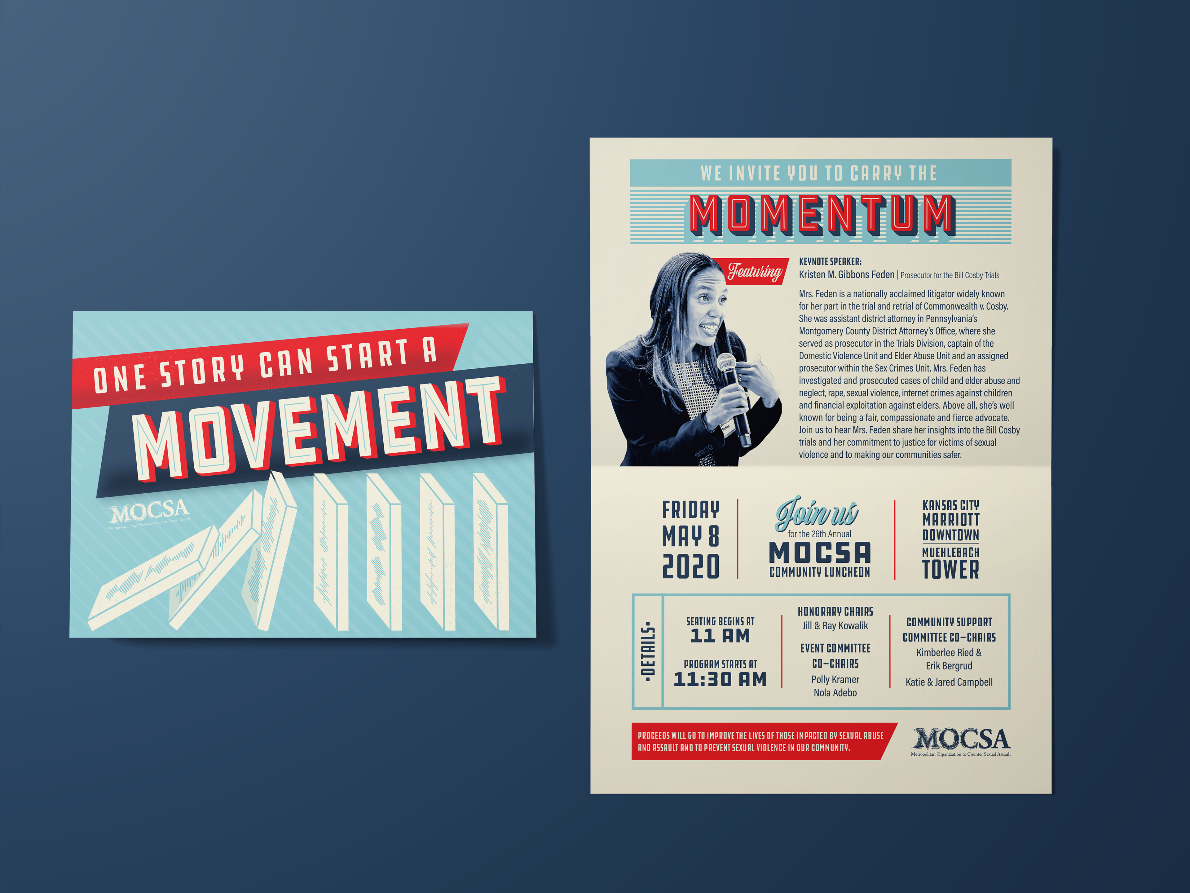 The Metropolitan Organization to Counter Sexual Assault is dedicated to serving those impacted by sexual abuse and assault in Kansas City. Their annual community luncheon is the most important fundraiser of the year and helps spread awareness of the challenges survivors face. This concept is about the idea that when we start by listening to survivors, then we carry the momentum needed to create change.